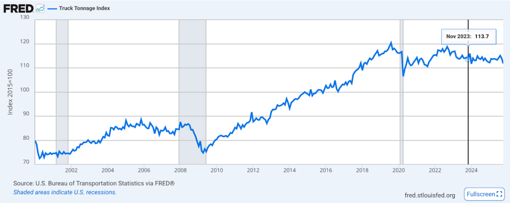 Data from the Department of Transportation shows that freight volumes have been on a noticeable downtrend since early 2022